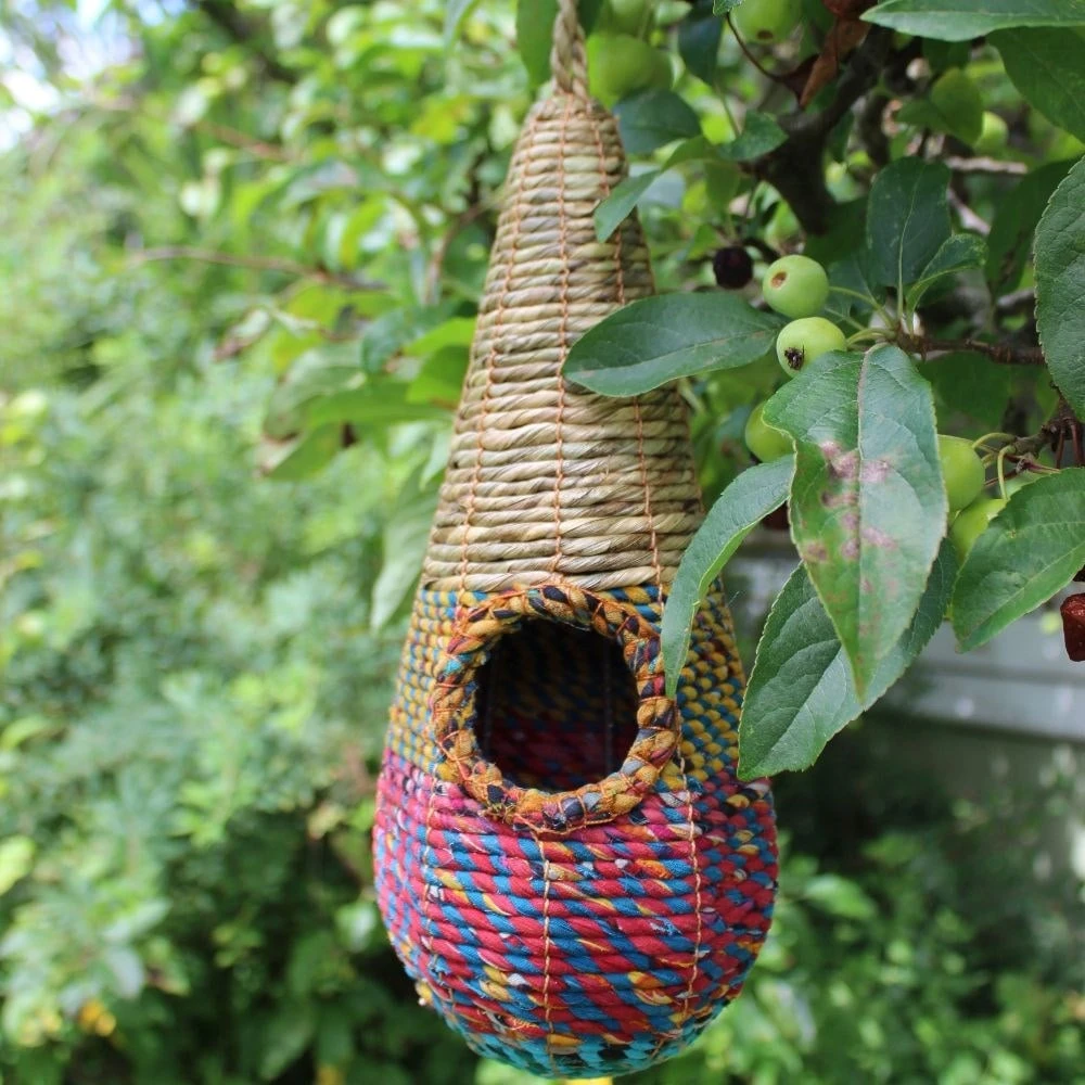 These bright and beautiful artisan nesters are made from natural seagrass and recycled sari fabric, handwoven and stitched onto a metal frame.
