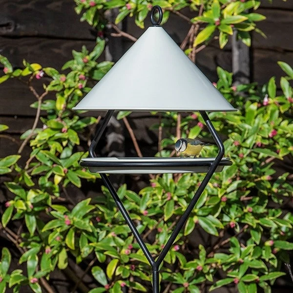 An elegant and practical alternative to wooden tables for modern gardens, the hut provides shelter and cover for smaller birds and requires minimal assembly.
