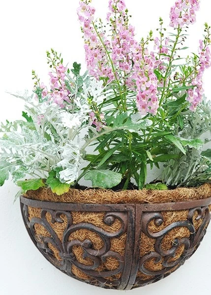 Striking cast iron wall manger with traditional scrollwork and a vintage-style distressed finish. Supplied with a coco fibre liner ready to fill with vibrant blooms to add a riot of colour to a bare wall.
