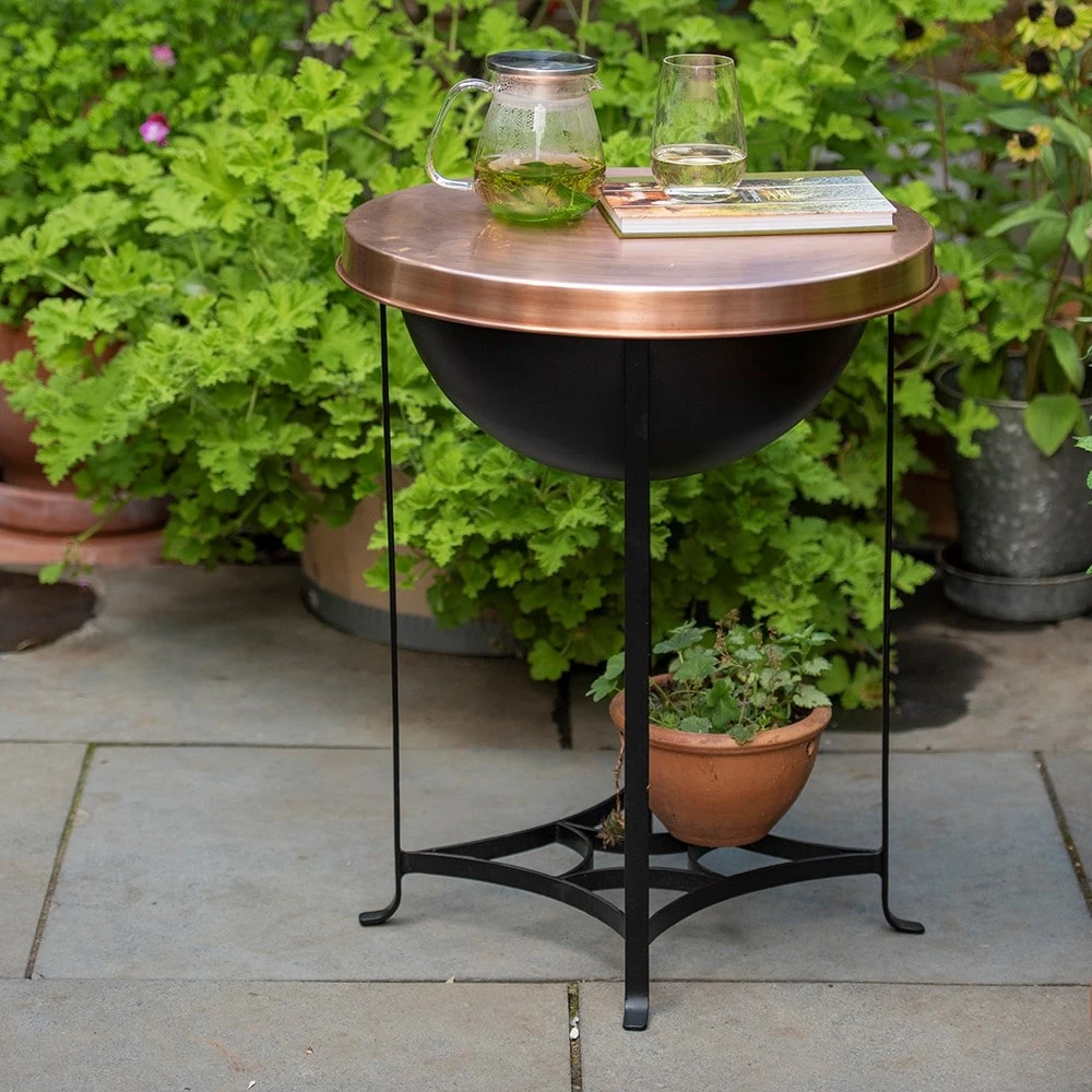 By day it serves as a smart outdoor side/coffee table (the shelf will take a plant pot so no space is wasted). Remove the copper top and it becomes a fire pit, ready to fill with crackling logs. You can then use the top as an attractive serving tray.