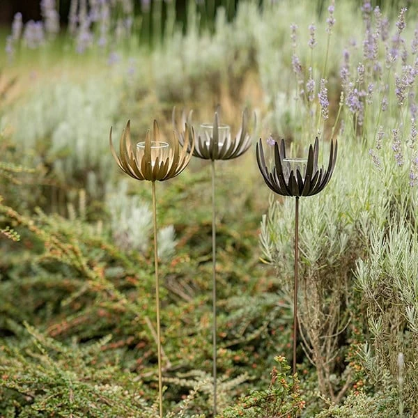 Keep enjoying the beauty of flowers, long after the garden has gone to sleep for winter, with our sculptural flower stake tealight holders.