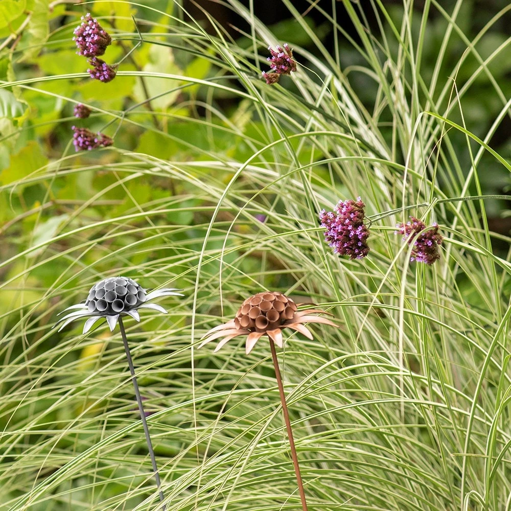 Please note: these individually handmade and finished stakes may include some sharp points or edges. Take care when unpacking and handling them and position in a quiet spot off the beaten track. When pushing into the ground, hold the lower part of the stem and push. Do not put all your weight on the head.