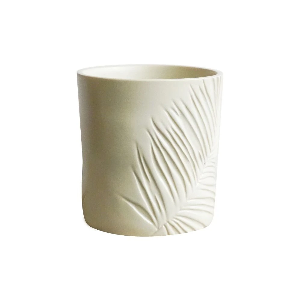 Made in Southern Europe from reactive glaze stoneware, this ivory palm embossed planter makes a simple style statement in any setting.